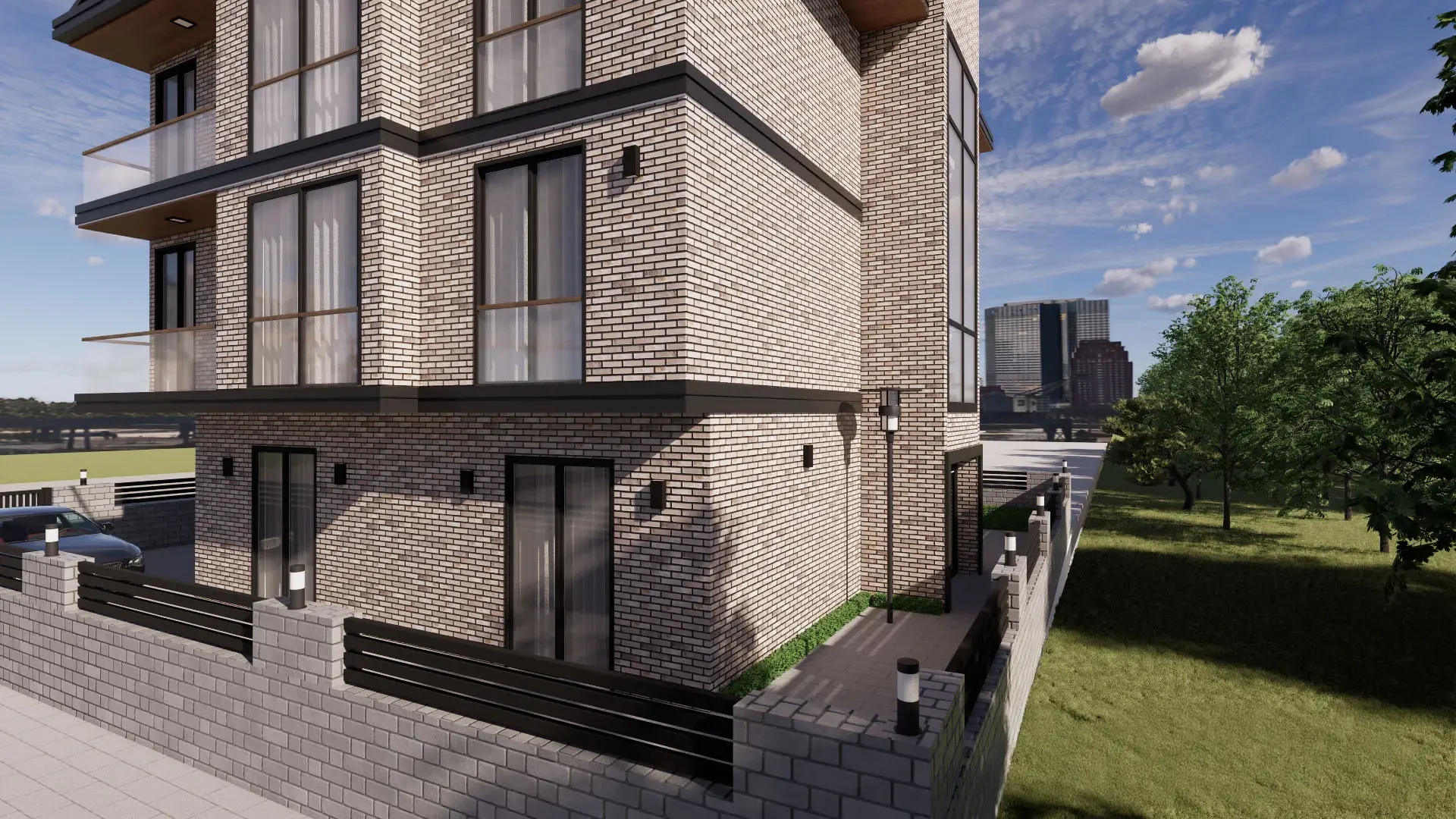 Projede, kompozit panel, seramik cephe ve kültür taşı gibi malzemeler kullanarak hem görsel zenginlik hem de uzun ömürlü dış cephe çözümleri sunduk. Kentsel dokuya uyumlu, enerji verimliliği ve bakım kolaylığı sağlayan tasarım yaklaşımımızla, TOKİ konutlarına çağdaş bir kimlik kazandırdık. Dış mekan peyzaj düzenlemeleri ve cephe detayları ile konforlu ve estetik bir yaşam alanı hedeflendi.